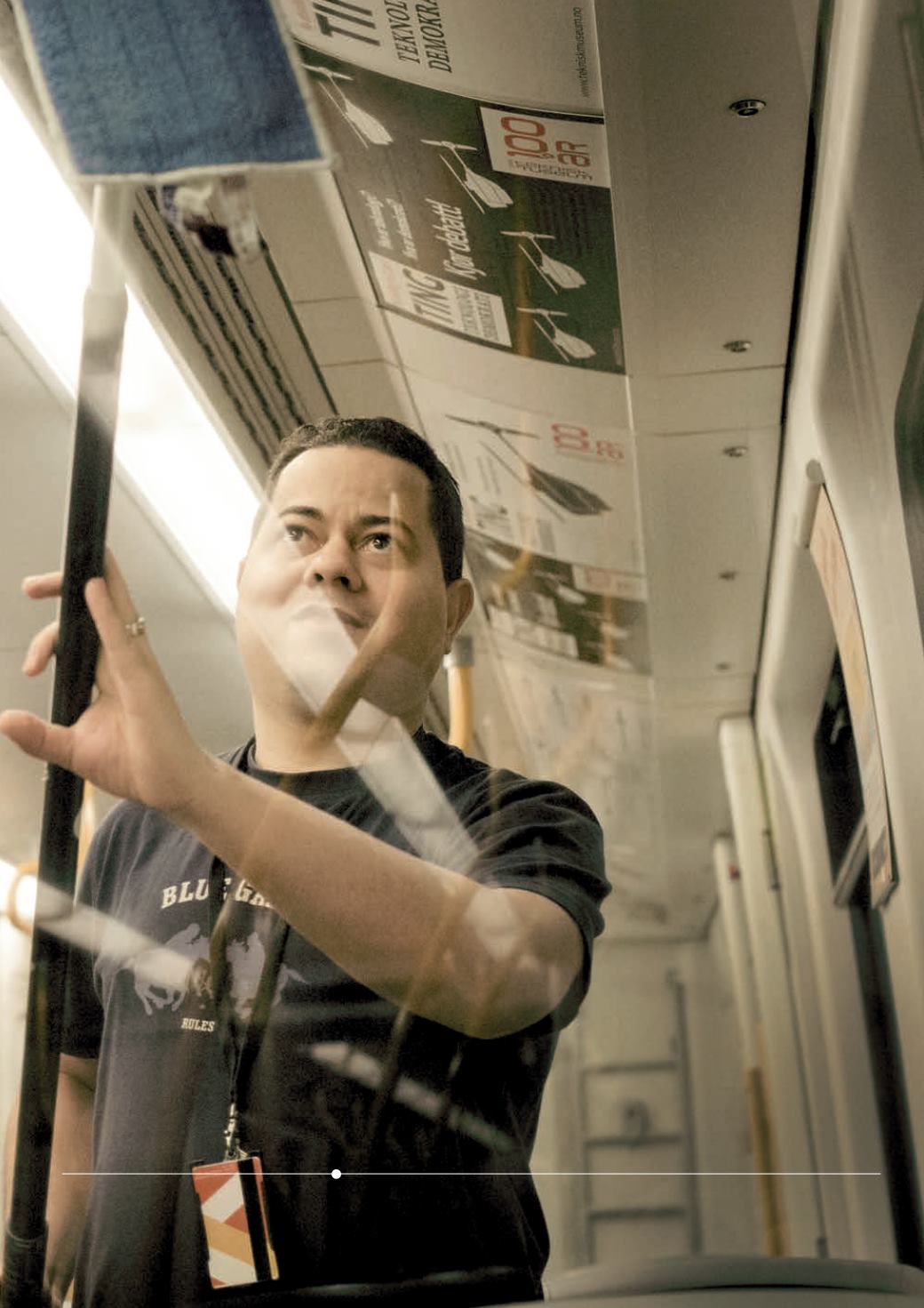 Og mens dagen for mange er over, sover ikke Sporveien. Leo rengjør